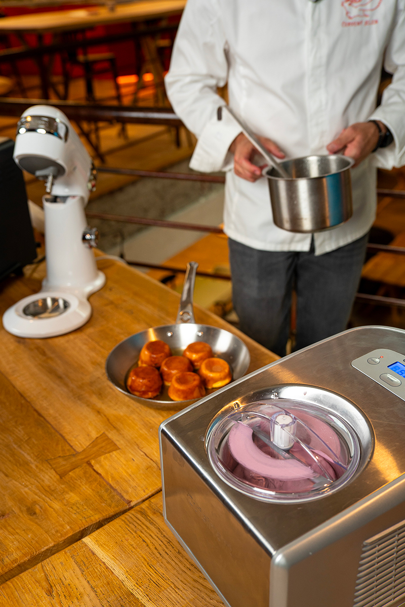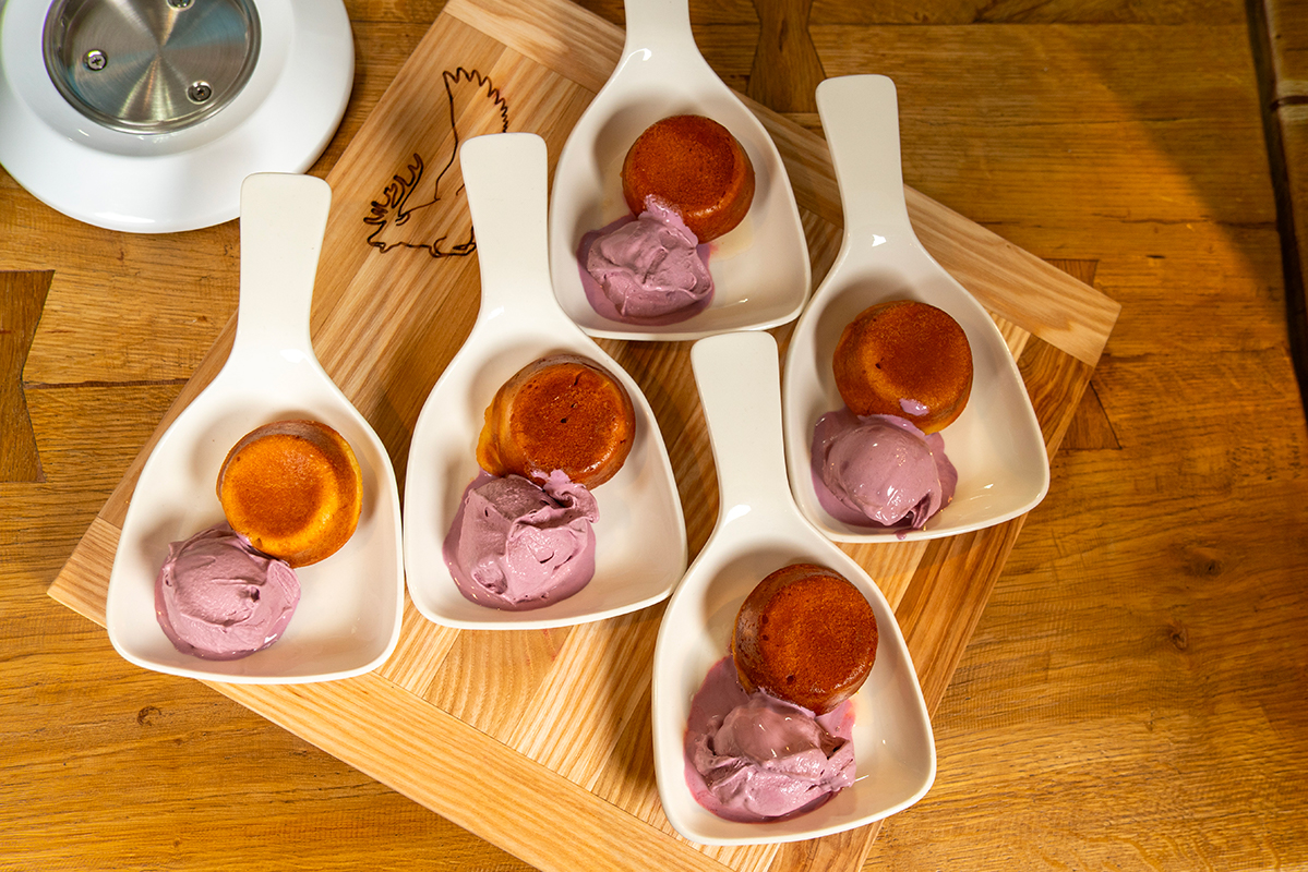 Smetanu zahřejeme na 80°C a přidáme cukr. Stáhneme a přidáme žloutky. Promícháme, přidáme borůvkové pyré a necháme vychladit. Vložíme do zmrzlinovače, model ICE100E a necháme si vyšlehat zmrzlinu.